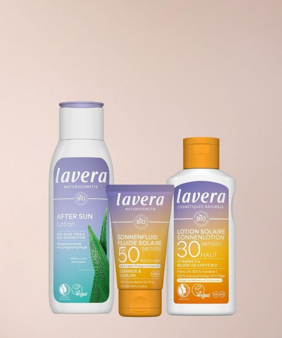 Wir lieben Sonne. Und wir lieben die Gesundheit unserer Haut. Deshalb ist die lavera Sonnenserie so entwickelt, dass sie jeden Hauttyp sofort schützt und nachhaltig pflegt. Mit 100 % mineralischem UV-Filter und natürlichen Bio-Inhaltsstoffen. Denn Sonne fängt mit Schutz an. Die lavera Sonnenserie umfasst Sonnenlotions, After Sun und Selbstbräuner Lotion.