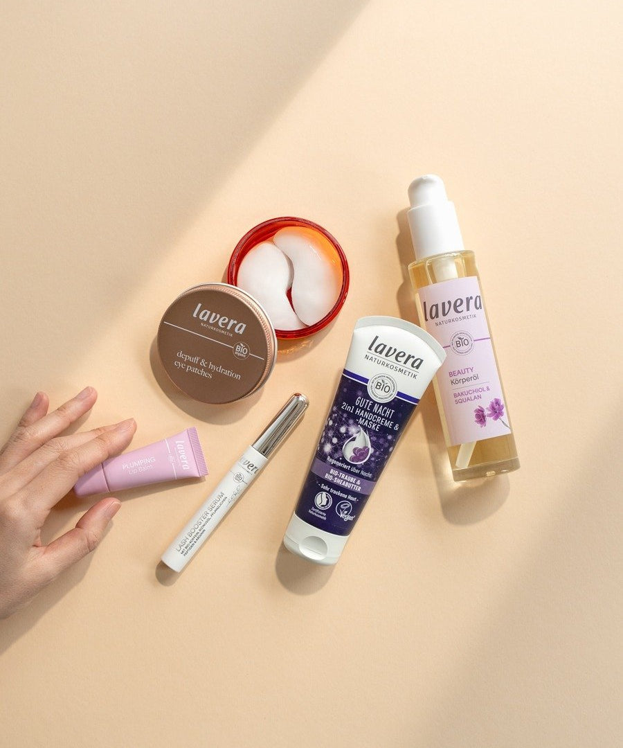 Diese milde, vegane Alternative zu Retinol ist ein natürlicher Power-Wirkstoff, den wir bereits aus der Gesichtspflege kennen. Bakuchiol unterstützt den Aufbau des hauteigenen Kollagensystems* und ist besonders gut verträglich. Dazu wirkt es ausgleichend auf den Hautton. *in vitro
